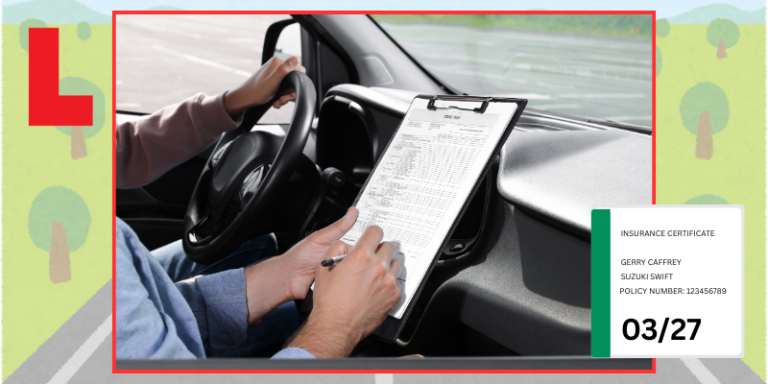 If the candidate’s name is not printed on the certificate, which is common where the car belongs to a parent, partner, friend or works vehicle arrangement, additional documentation is required. The candidate must provide written confirmation from the insurance company stating they are insured to drive that vehicle for the purpose of the test.