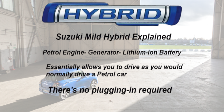 Mild hybrids and full hybrids differ from plug in hybrids by having smaller batteries and no external charging capability. So the current Suzuki range of Swift, Vitara and S-Scross are mild hybrids but the launch of the new eVitara in April will bring the first of a new range to customers looking to stay with the reliable Suzuki model but with an all electric model. More information can be found here.